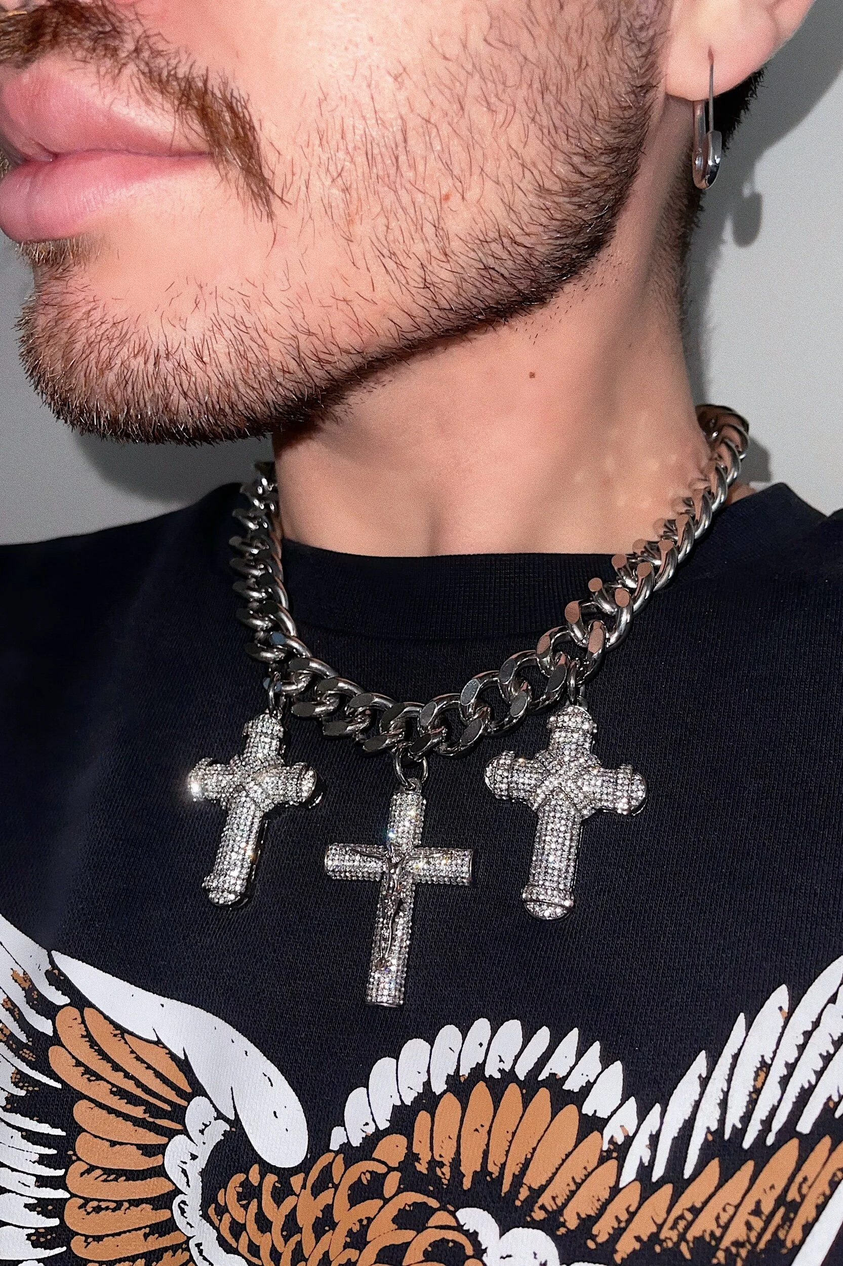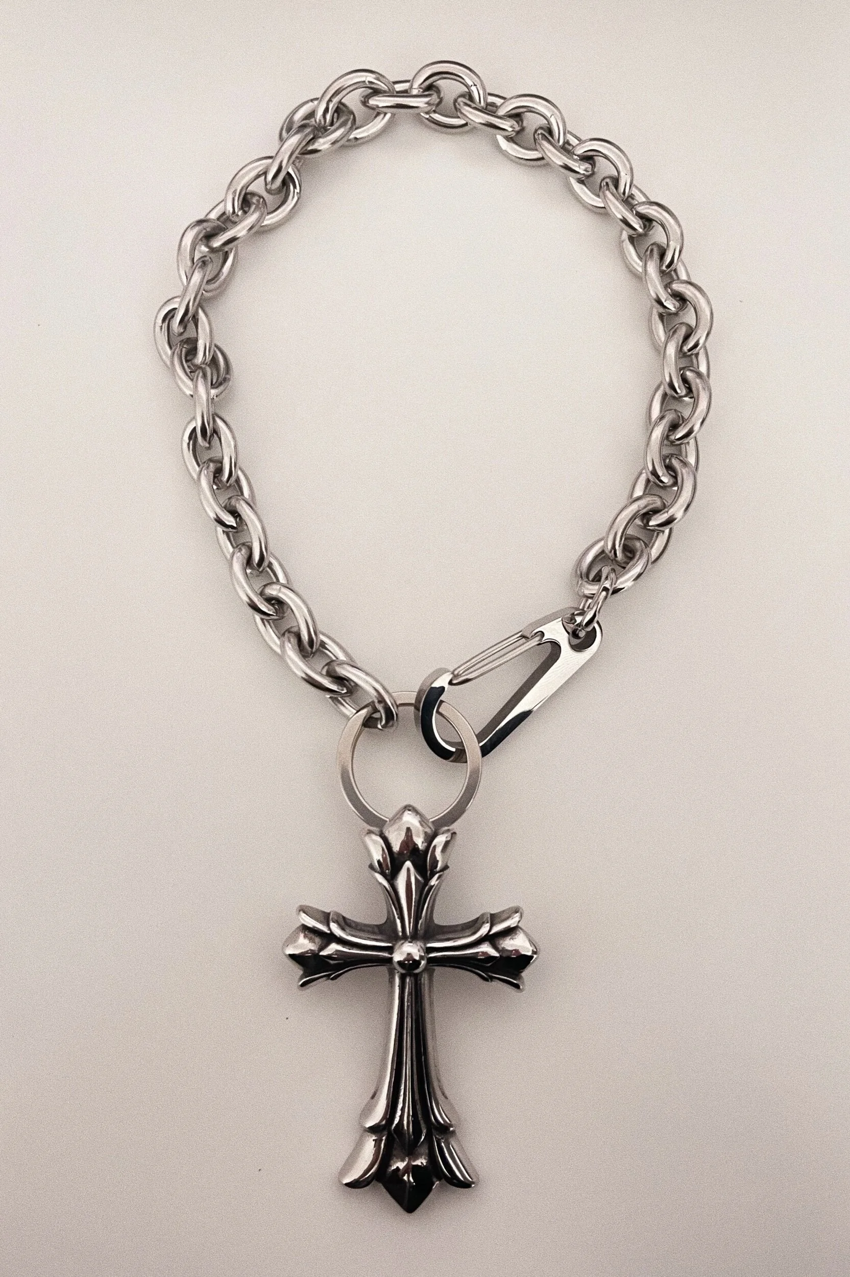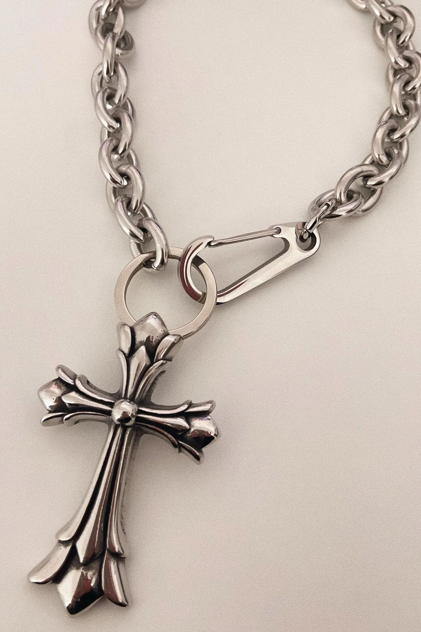 HEAVY WEIGHT STAINLESS STEEL CURB CHAIN PAIRED WITH STAINLESS STEEL CROSS CHARMS. WEARING THIS, NO ONE WOULD DARE CROSS YOU ;) JESUS IS ON YOUR SIDE.